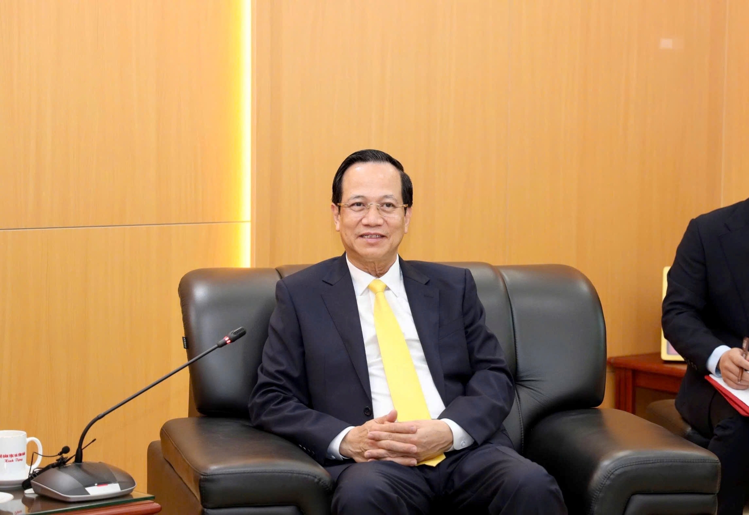 Bộ trưởng Bộ Dân tộc và Tôn giáo Đào Ngọc Dung trao đổi tại buổi tiếp